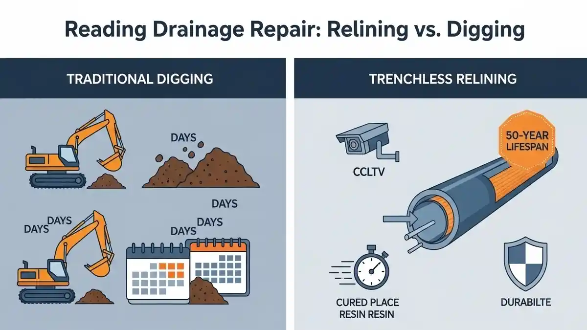 Avoid costly, messy excavations. Compare Ealing Drain Relining vs Digging to save your home, time, and money with our expert, minimally invasive, and durable no-dig repair solutions for local drains.